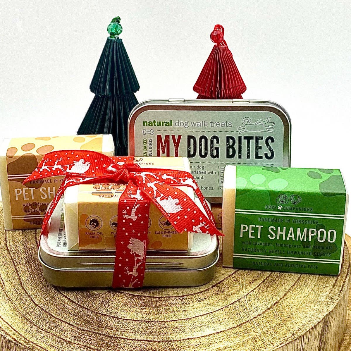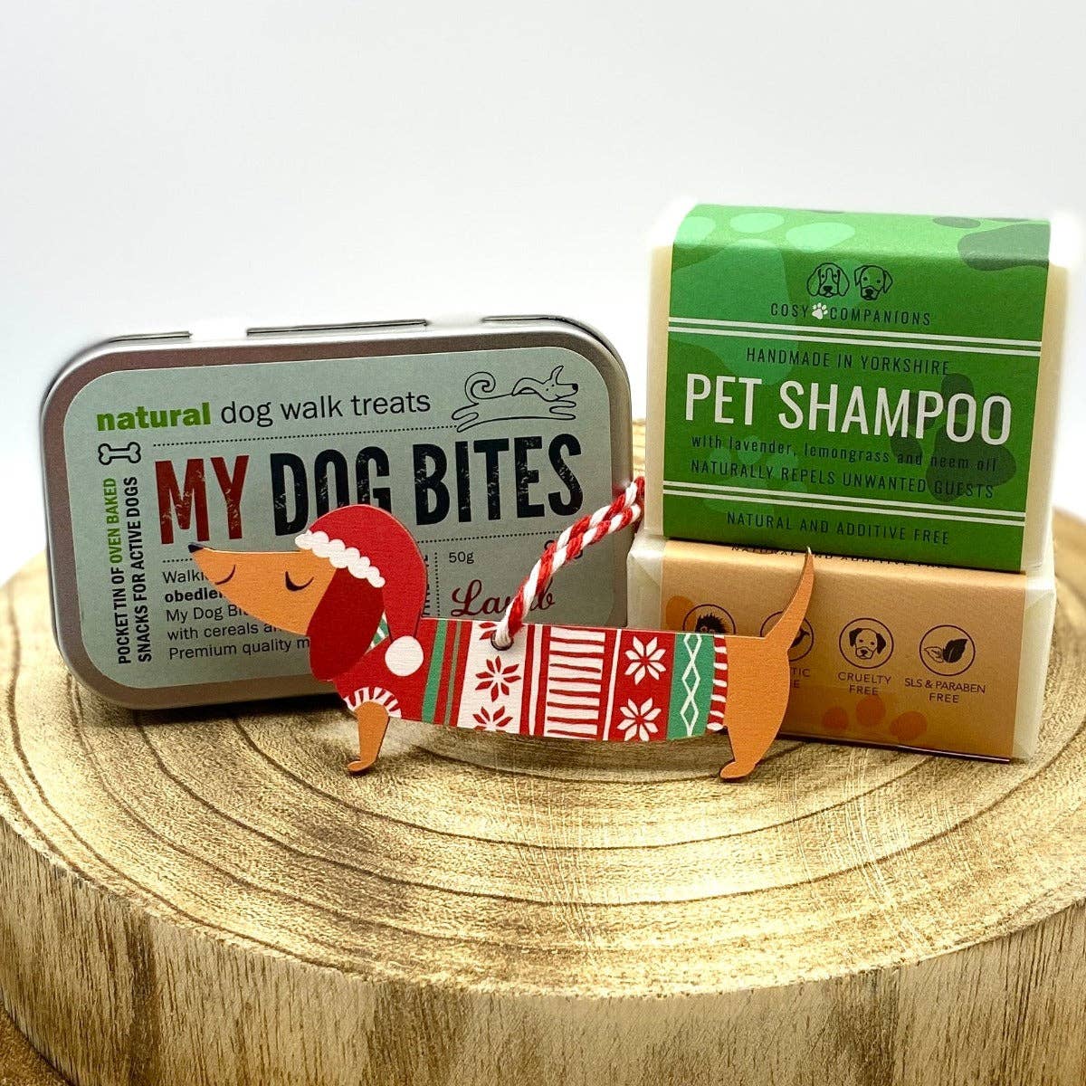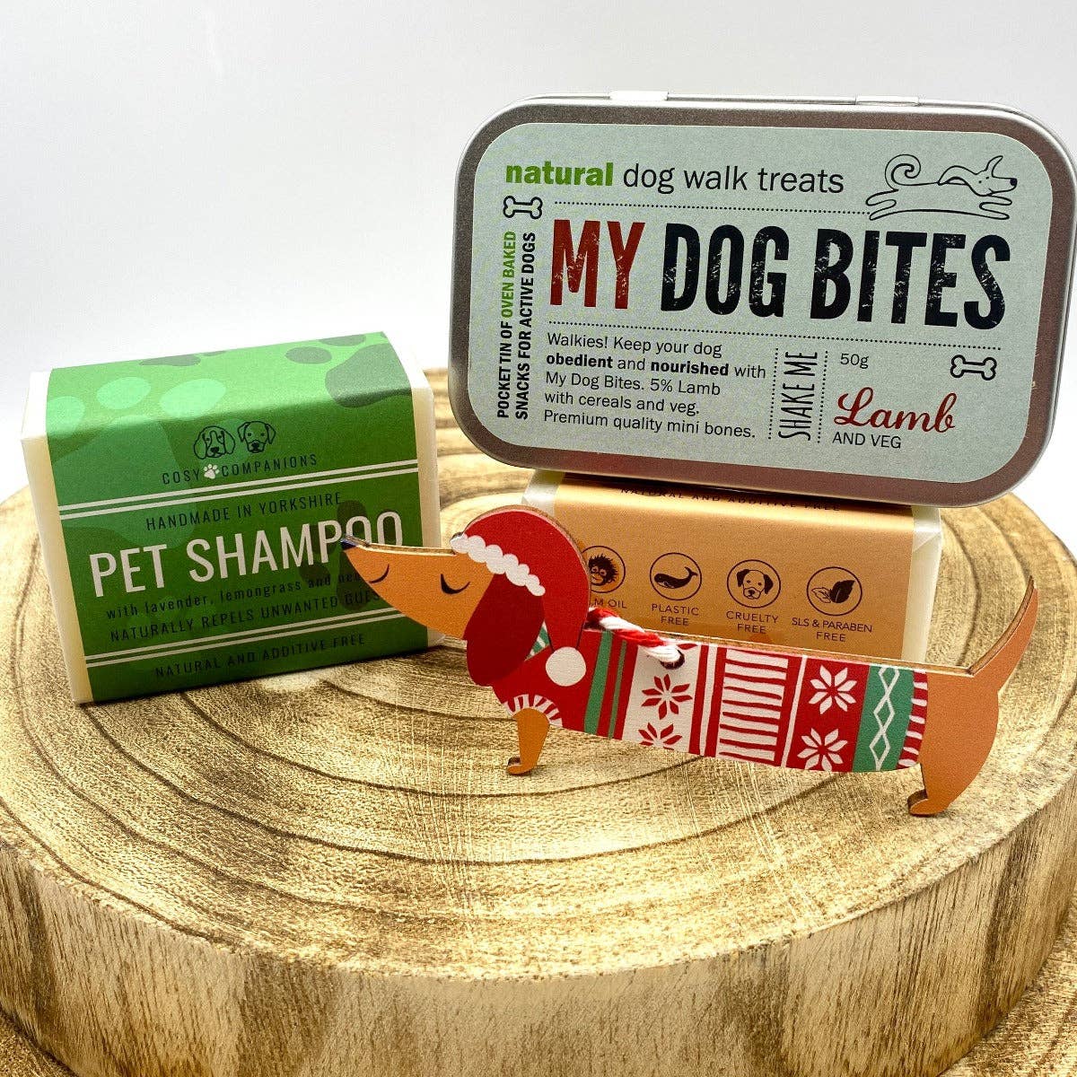 To make sure nobody in your family misses out this year, we're offering a special treat for our our canine chums; a choice of one of our celebrated and prize winning all natural solid pet shampoos paired with a delicious rattly tin of tempting lamb flavoured dog treats from our friends at My Dog Bites in London. The custom designed, rattling tin is ideal to help with recall.
