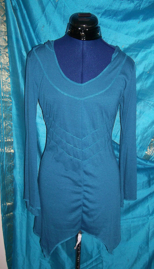 HIPPY/BOHO HOODED PIXIE TOPS-SUMMER/LIGHTWEIGHT DIAG.HEMLINE-VARIOUS COLOURS