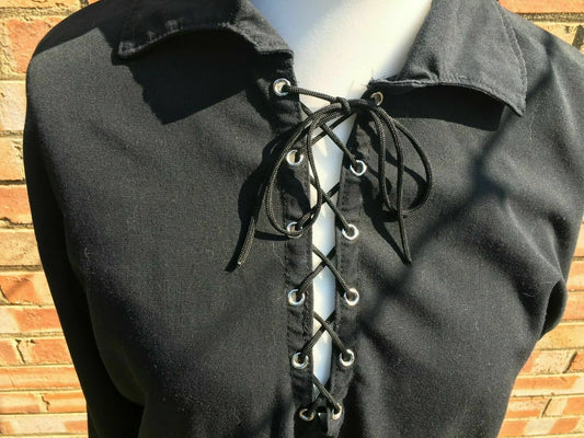 FUNKY UNISEX Black Rose lace-up goth/PUNK/goth/biker shirt,LONG SLEEVE-size40"/M