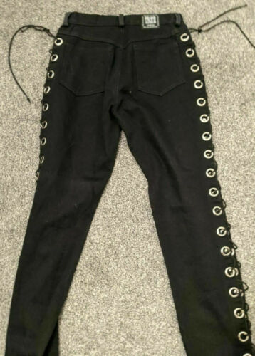 Men's Gothic Black jeans With Lace Eyelet Sides 28'' Waist Cyber Punk. Dispatched with Royal Mail 2nd Class signed for.