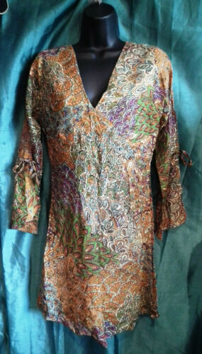 SUMMER TUNIC-BEACH/FESTIVAL/BOHO -paisley,3/4 SLEEVES,TIE WAIST,PATTERN,cotton