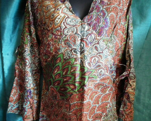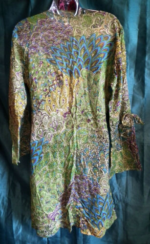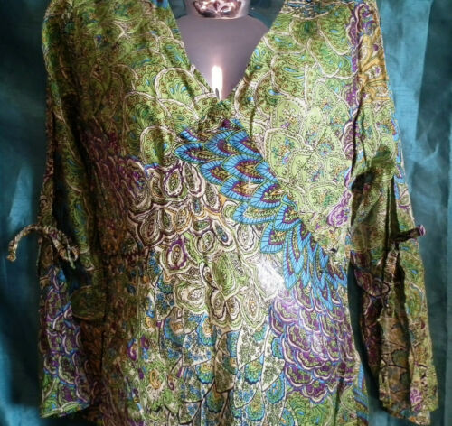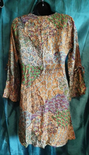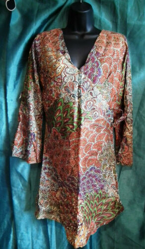 SUMMER TUNIC-BEACH/FESTIVAL/BOHO -paisley,3/4 SLEEVES,TIE WAIST,PATTERN,cotton, LIGHTWEIGHT, PERFECT ITEM FOR BEACH, SUMMER, FESTIVAL SUNNY DAYS..