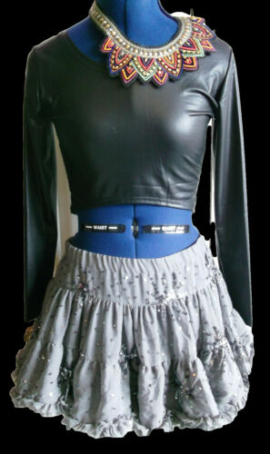 STEAMPUNK/goth/BOHO/PUNK SILVER SEQUINN tutu LAYER MINI SKIRT,SIZE8 ,TOP SHOP