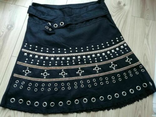 Ladies 12 black Skirt, A line style, VGC fixed belt, studs, punk, Morgan quality