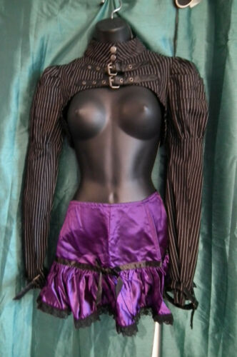 STEAMPUNK/goth/BOHO/PUNK BLACK&GREY COTON RUFFLE MINI SKIRT,SIZE S/M, WAIST30"