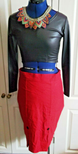 STEAMPUNK/goth/BOHO/PUNK red stretchy pencil SKIRT,SIZE12,Voodoo Vixen.size 10
