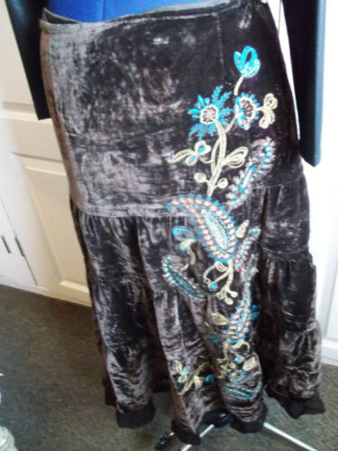 STEAMPUNK/goth/BOHO/PUNK brown velvet long SKIRT,SIZE12/14,lined,embroidered