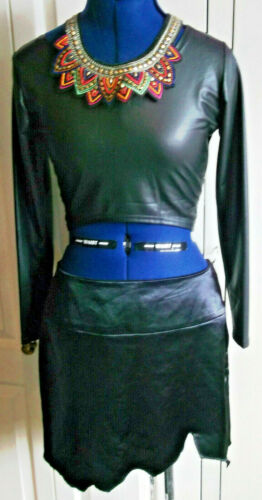 PUNK/goth/BOHO/VINTAGE black satin, mini pencil skirt.size8.jagged hemline
