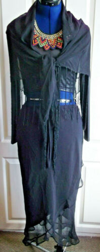 PUNK/goth/BOHO/vintage BLACK chiffon long floaty SKIRT,ELASTICATED WAIST, LINED