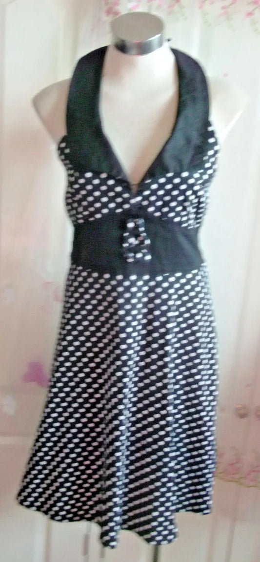 Living Dead Souls Dress.polkadots.Halterneck.Goth Punk 50s Rock.size16-18uk