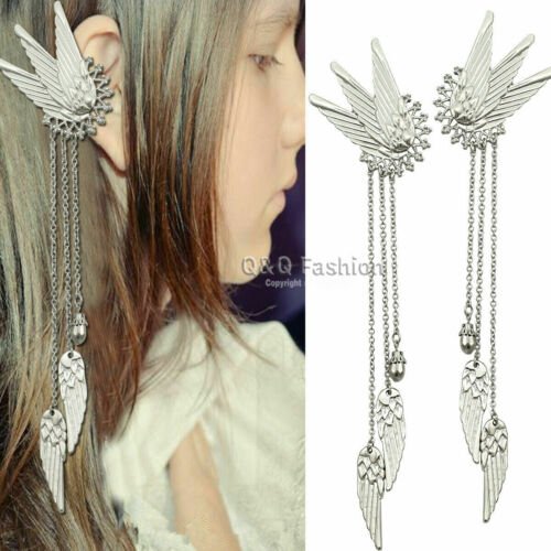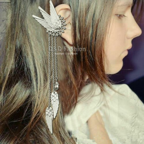 1Pair Fairy Elf Pixie Angel Wing Long Tassels Ear Cuffs Clips Cosplay Earrings