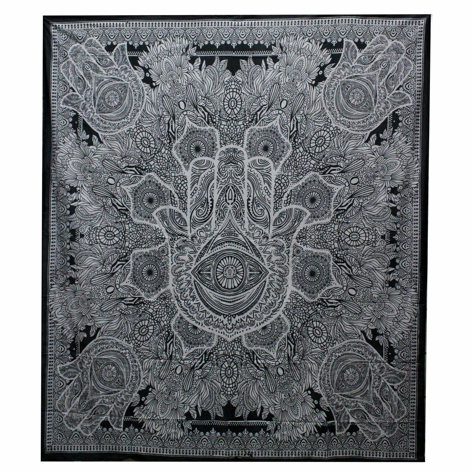 B&W Double Cotton Bedspread/Wall Hanging-HAMSA-Width: 200cm Height: 230CM