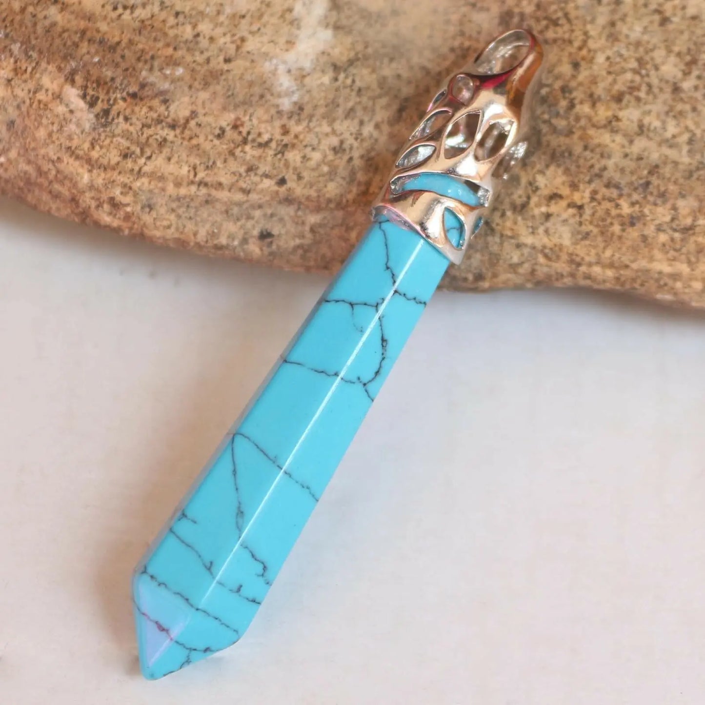 Natural Gemstone Long Hexagonal Healing Chakra ReikiPendant Chain Necklace&chain