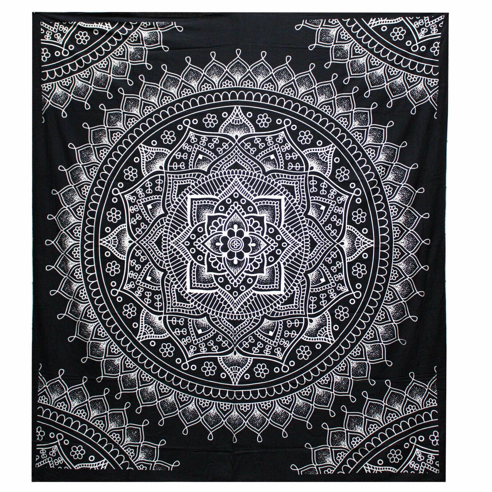 These STUNNING Black & White Double Cotton Bedspread Wall Hanging are real works of art. Full of symbolic meanings taken from ancient Indian traditions features in 7 different designs, ALL AVAILABLE AT woNKEYdoNKEYbAZAAR, printing by hand will incur minor imperfections. Do not confuse with cheap mass produced machine printed items.