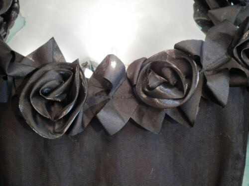gorgeous rose detailing on bodice, front and back, straps, and on skirt. mermaid design, full length dress. stretchy cotton/polyester.