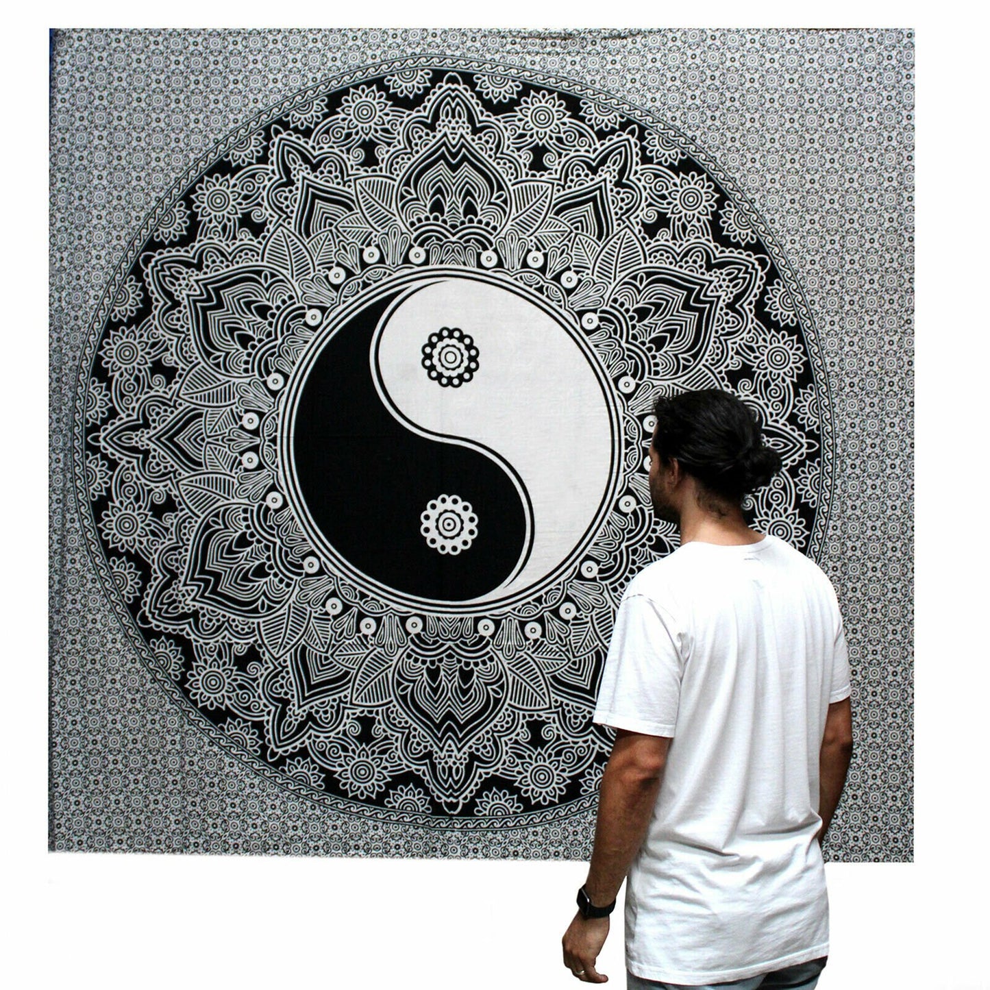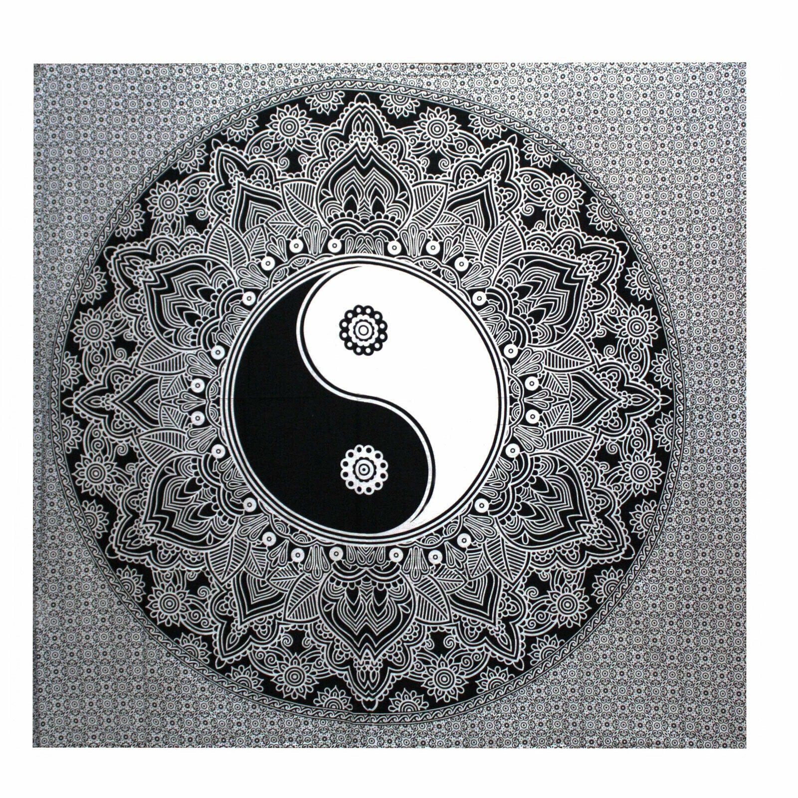 B&W Double Cotton Bedspread/Wall Hanging-YIN YAN-Width: 200cm Height: 230CM