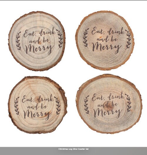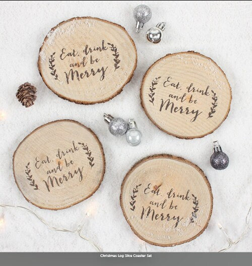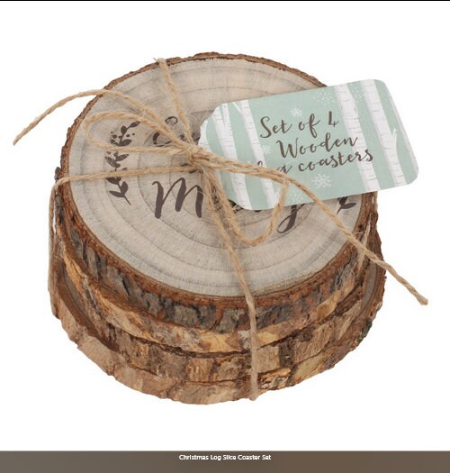 Christmas Log Slice Coaster Set H1.2cm W9.5cm D9cm