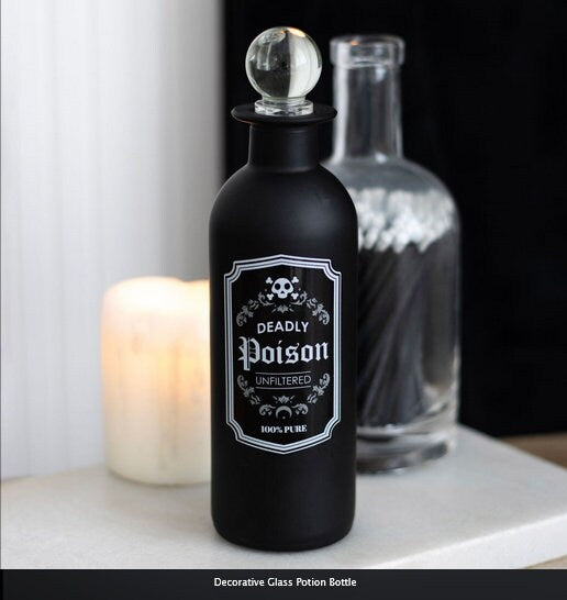Made of frosted glass accented by a vintage-inspired 'Deadly Poison' label and finished with a clear glass stopper for capturing all things dark and mysterious.