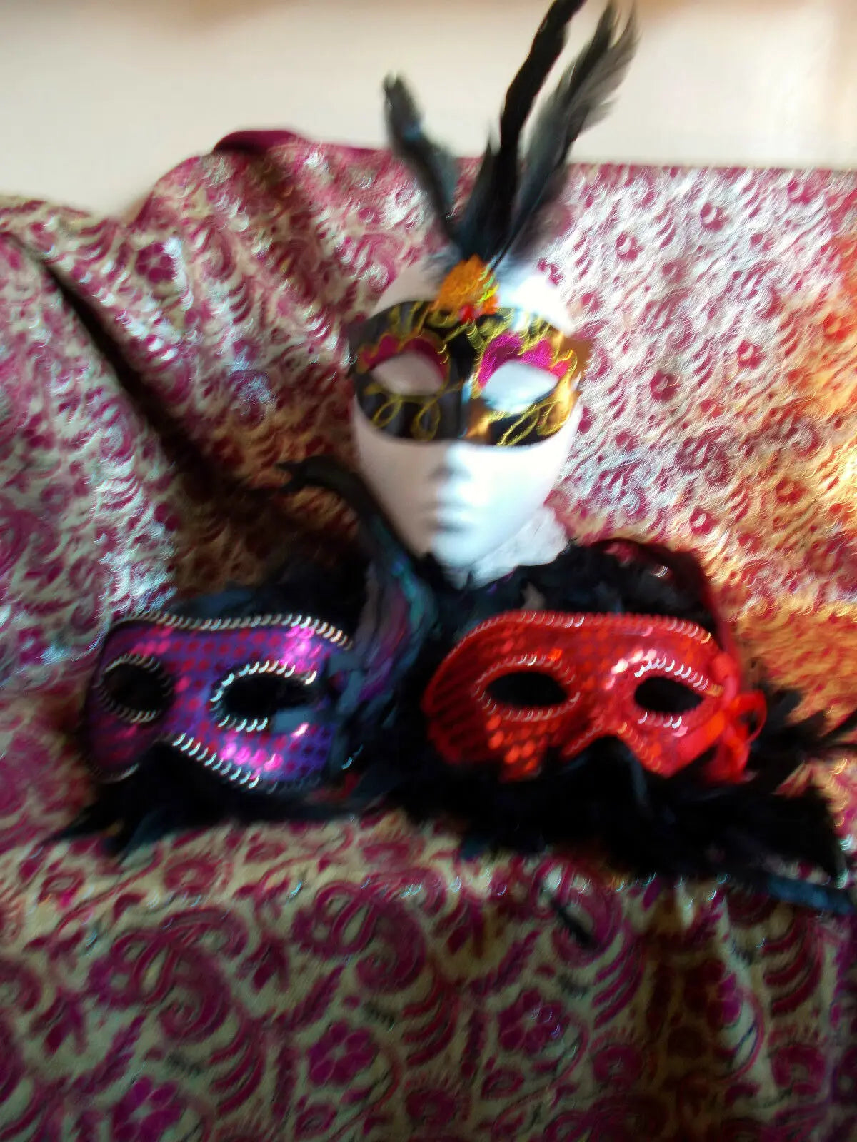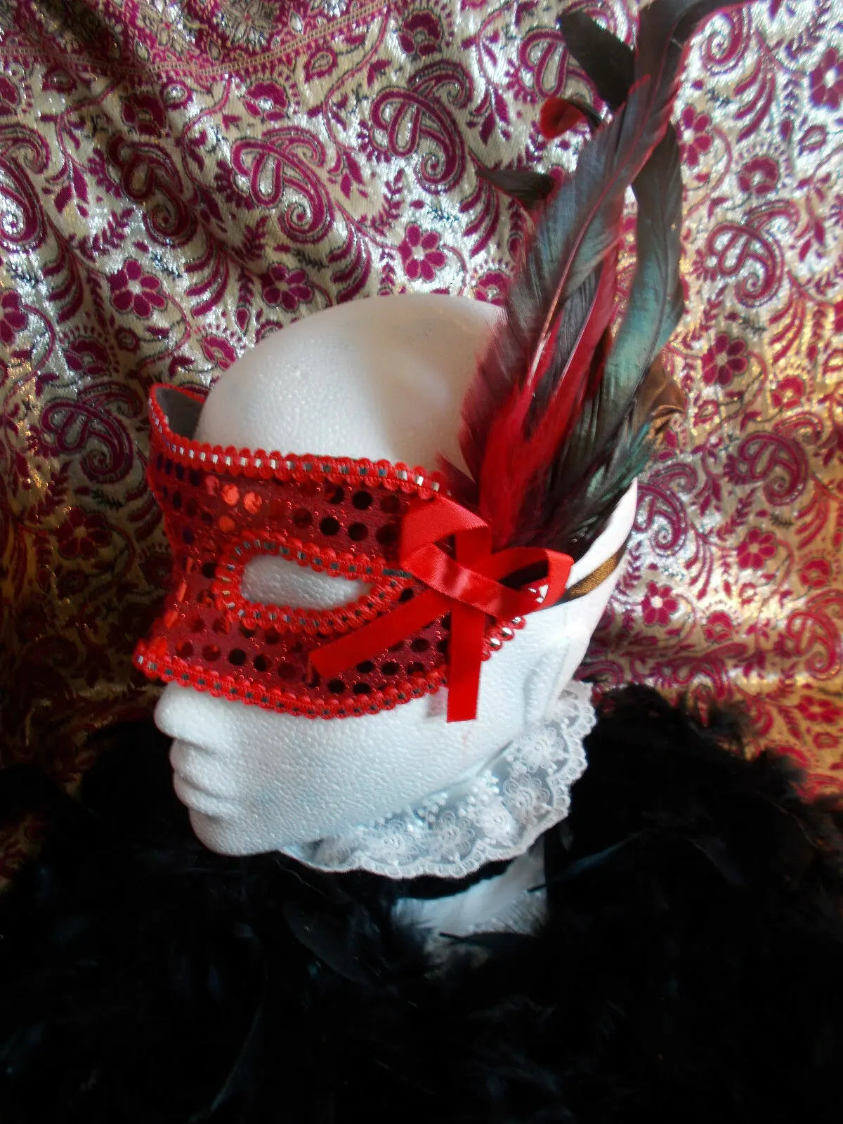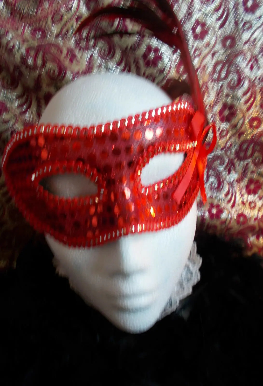 MASQUERADE MASK GLITTER MASK WITH RIBBON FASTENING COMES IN 2 colours-red, purple.. Please message option colour choice upon purchase.Thanks