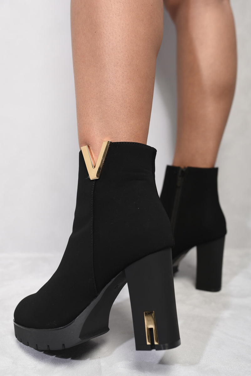 Heeled Ankle Boots with Gold Details