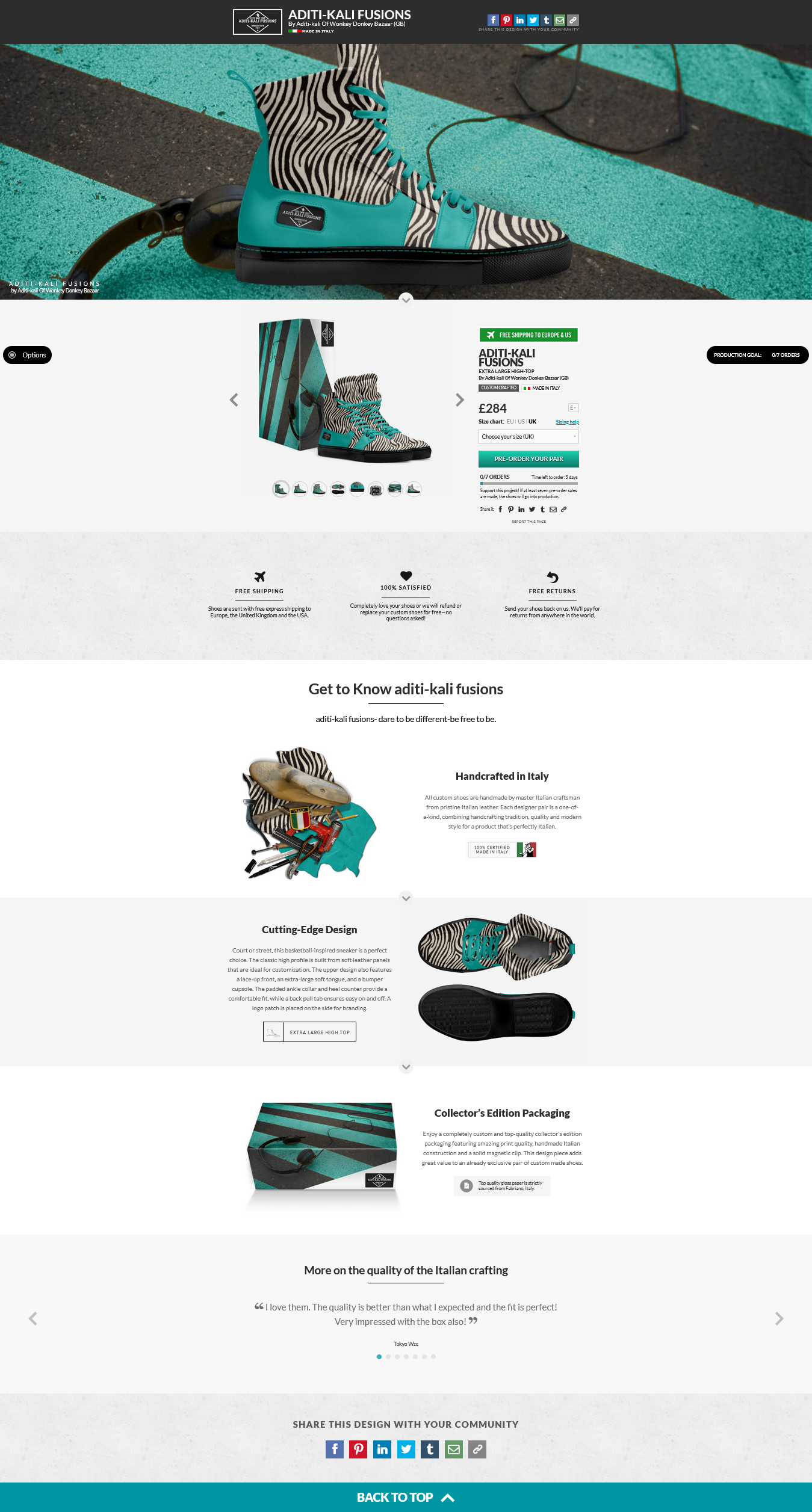 Shoes are sent with free express shipping to Europe, the United Kingdom and the USA.