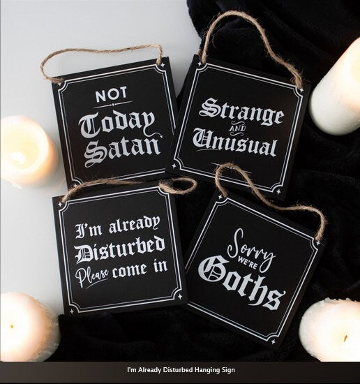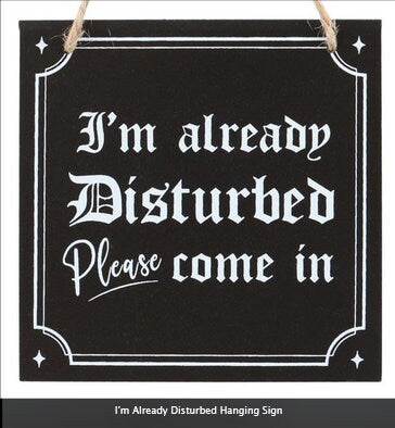 I'm Already Disturbed Hanging Sign black, H12cm x W12cm x D0.8cm wichy gothic