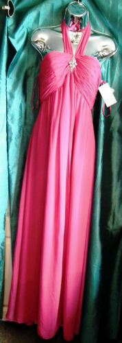 DIAMANTE motif on bodice ,ruffled bodice,halter neck tie, sash. padded bodice.size 10, chiffon fabric.. absolutely gorgeous..a must see..