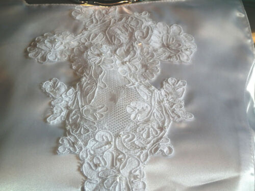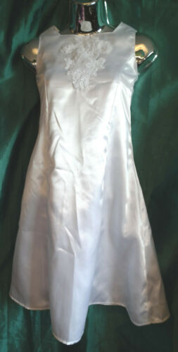 New white satin kneelength WEDDING/PROM skater dress beadwork.sizexxsBUST 28"