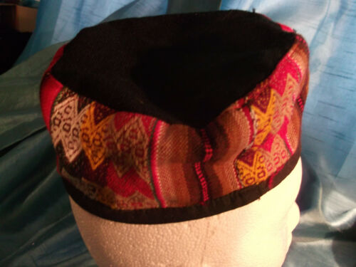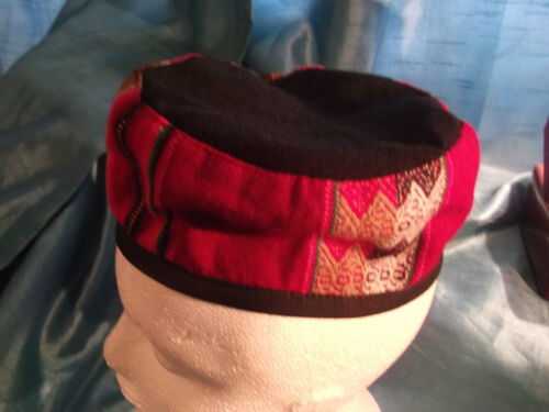 punk/cosplay/festi/stagewear/costume/ RED TRIBAL WOVEN. FEZ STYLE HAT 20"/52CM