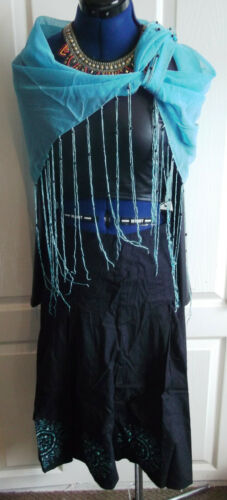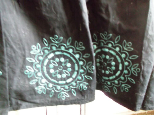 PUNK/goth/BOHO/vintage BLACK cotton long floaty SKIRT,green embroidered paisley