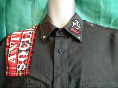 48"CH.PROFIT BEFORE PEACE/ANTI-SOCIAL/GBH/CHAOS UK PATCHES /STUDS ON COLLAR, POCKETS AND ANARCHY PATCH. button up front. SHORT-SLEEVED.