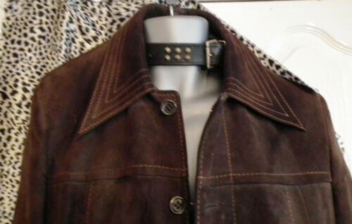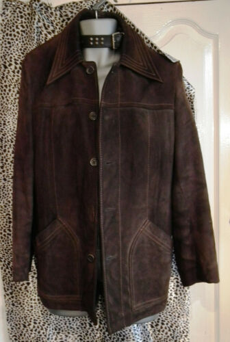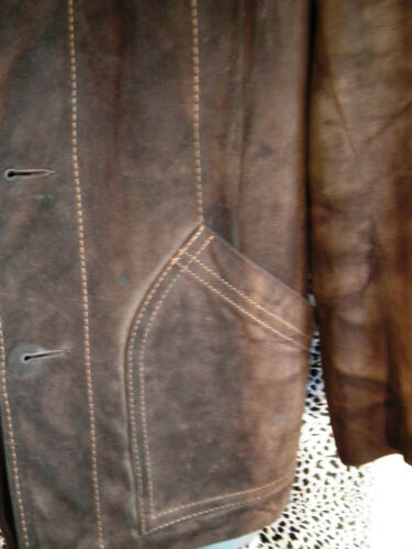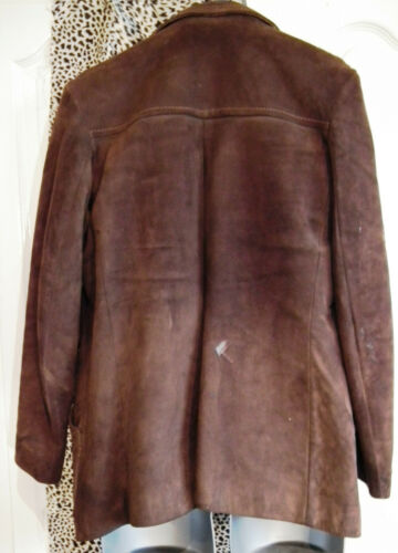 unisex vintage brown suede 3/4 length coat-lined, deep pockets,44" chest