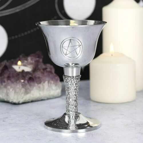 wicca/new age/pagan Silver Metal Pentagram Chalice H13cm x W9cm x D9cm