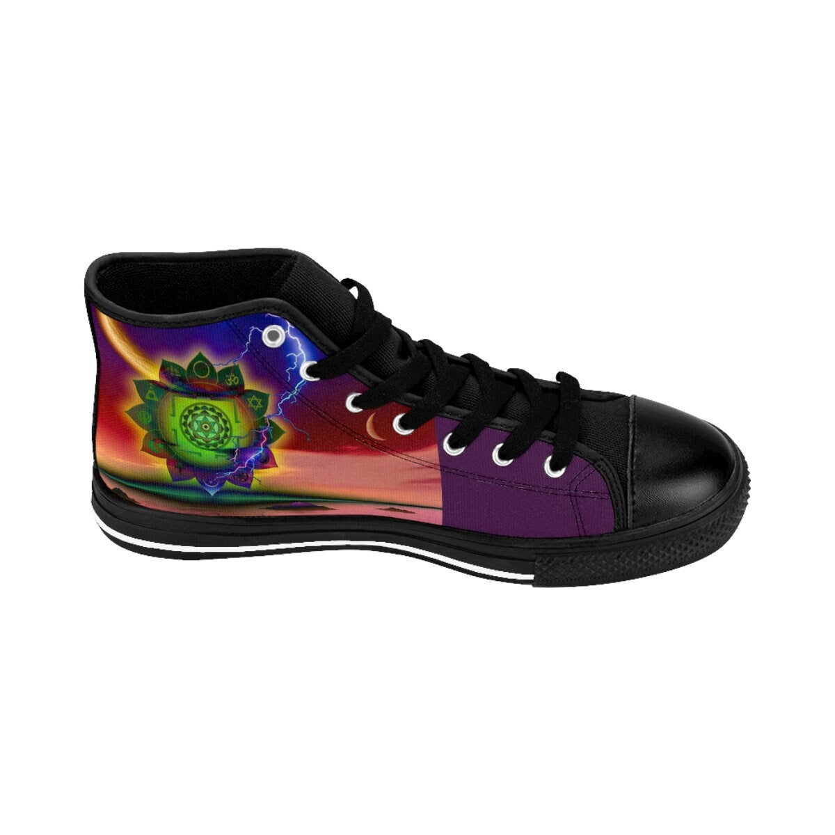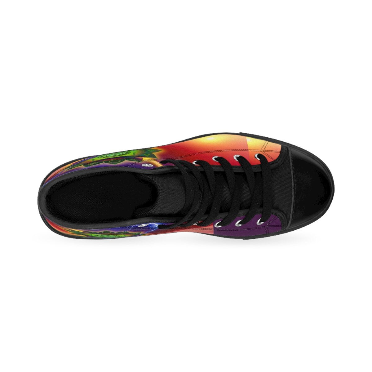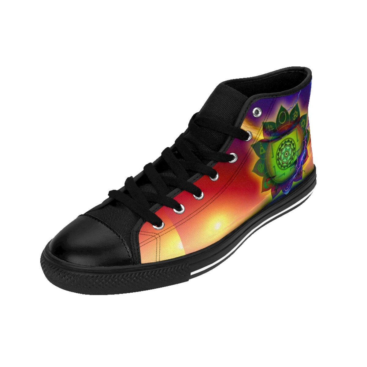Fashion sense has no limits! These extremely comfortable high-top canvas sneakers with a high quality print are made to last and to impress - a truly original way to express oneself and inspire new fashion trends on the go.\n.: Made of 27.87 Oz Nylon-canvas\n.: 6-12 US size\n.: 5" calf height\n.: Durable rubber outsole